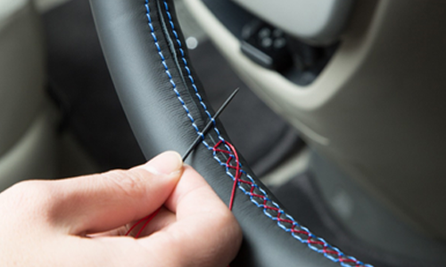 自動車部品の内装には革製品が多く使われております。試作や小量生産に対応し、職人の手作業で高品質なアウトプットに対応いたします。